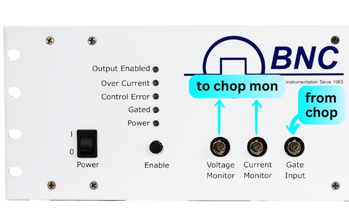 The chopper monitor system takes analog information from the PVX-4141 and other parts of the accelerator systems, digitizes them, and performs operations using an FPGA to compensate for small changes in the beam in real time. This is done by modulating the frequency and width of the gate signal controlling the PVX-4141 pulse width and repetition rate. In other words, the PVX voltage monitor and current monitor provide data used to maintain stable operation.
